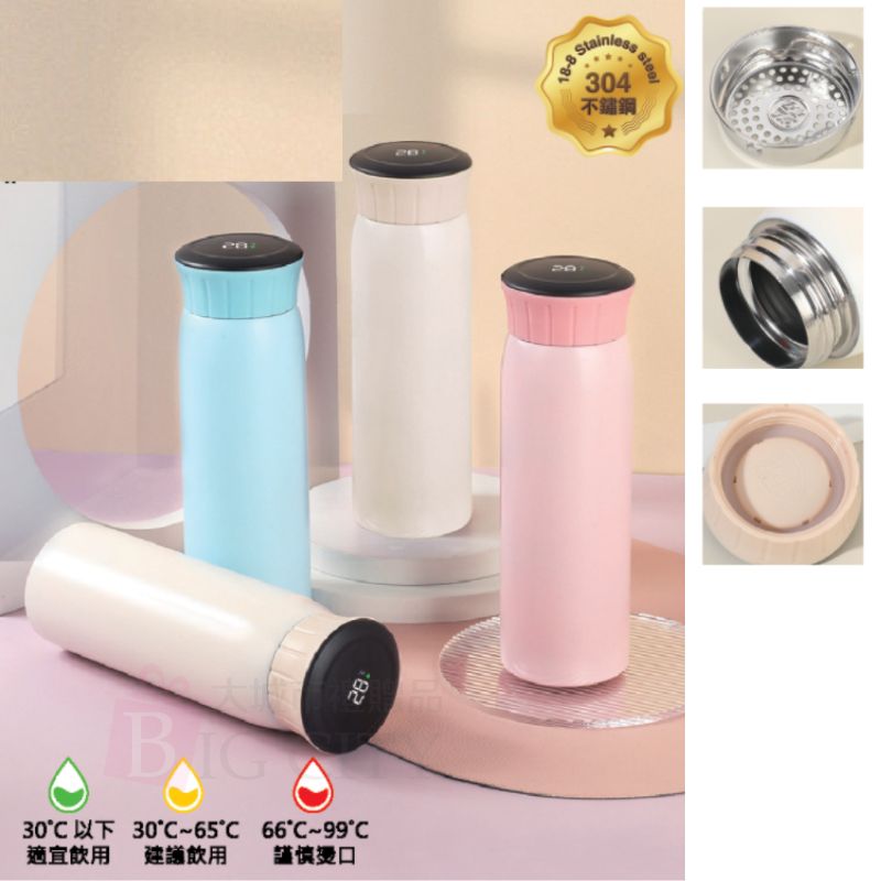 尺寸:材質:304內膽+智能顯示PP上蓋 規格/容量:H20*直徑7CM 500ML 包裝:彩盒