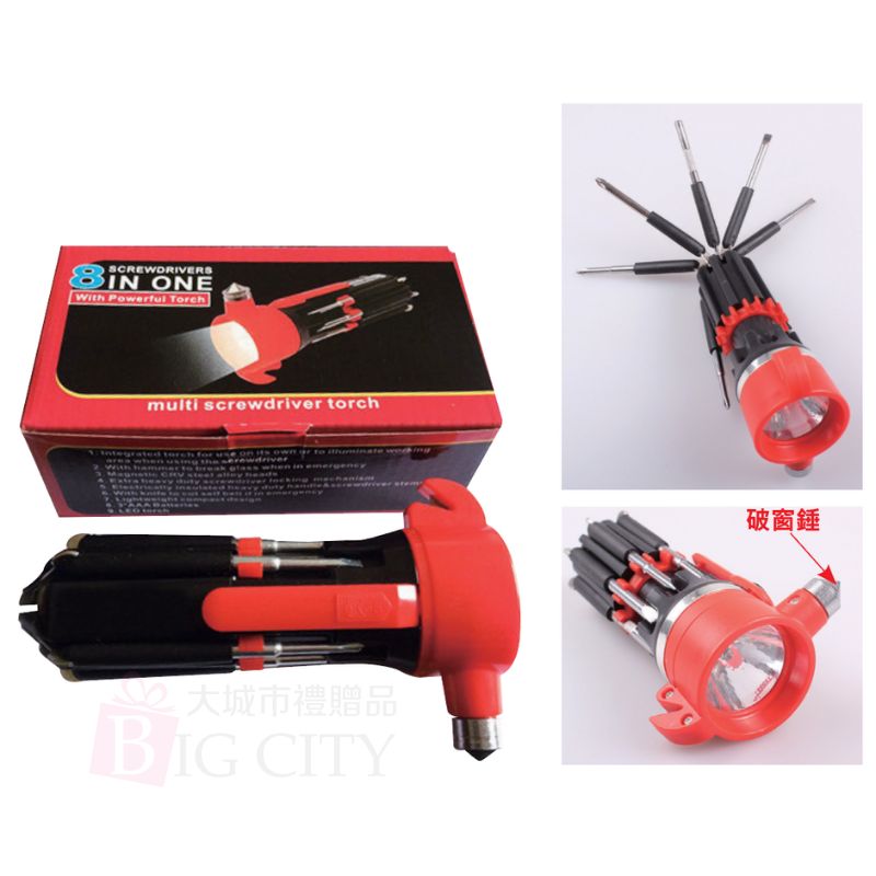 多功能:照明燈+破窗錘+螺絲起子6種
