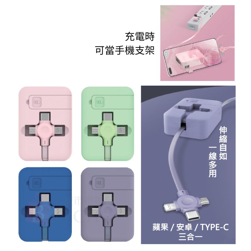 馬卡龍三合一伸縮充電線