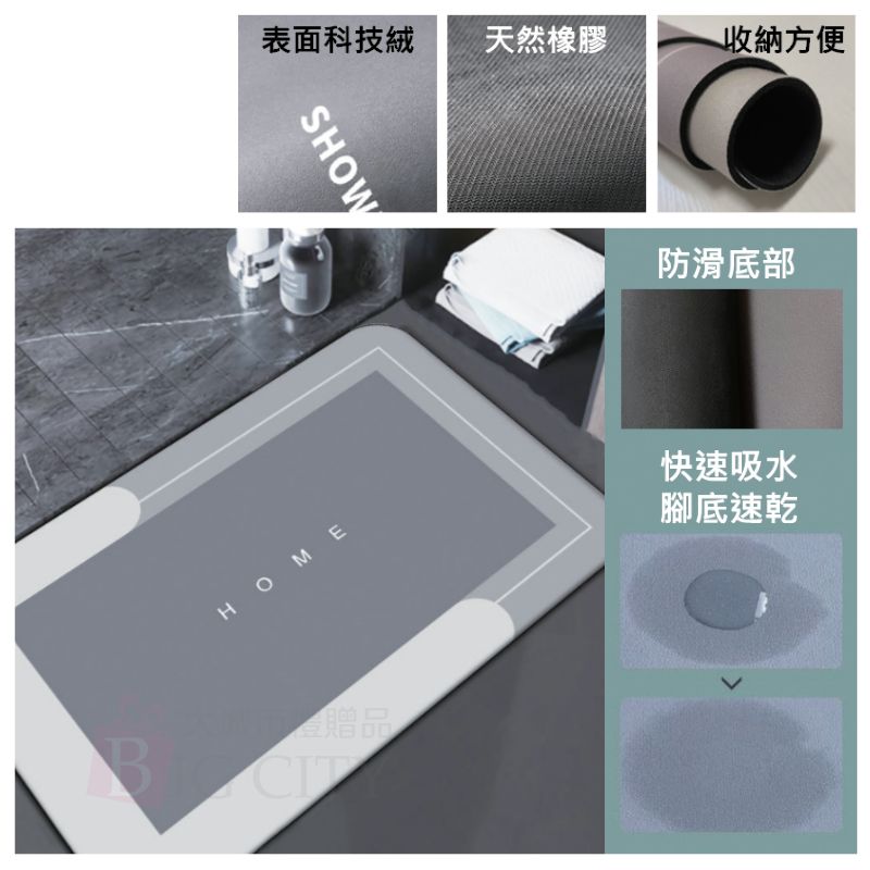 材質:科技絨+橡膠+硅藻士複合添加物