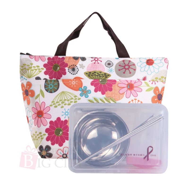 尺寸:內容物:34x24x13cm保溫餐包+PP塑膠餐盒+不鏽鋼筷+湯匙+PP塑膠杯 *裸裝出貨