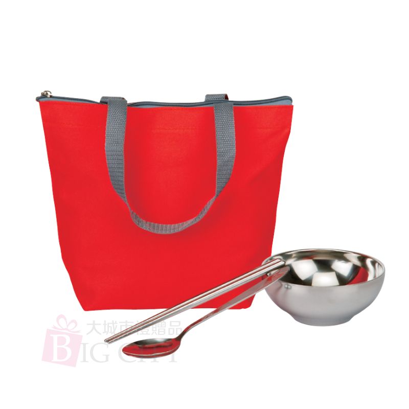 尺寸:內容物:27x22cm手提餐包+21cm筷+仙鶴餐匙+不鏽鋼雙層碗 材質:600D帆布袋+高級不鏽鋼餐具 *裸裝出貨